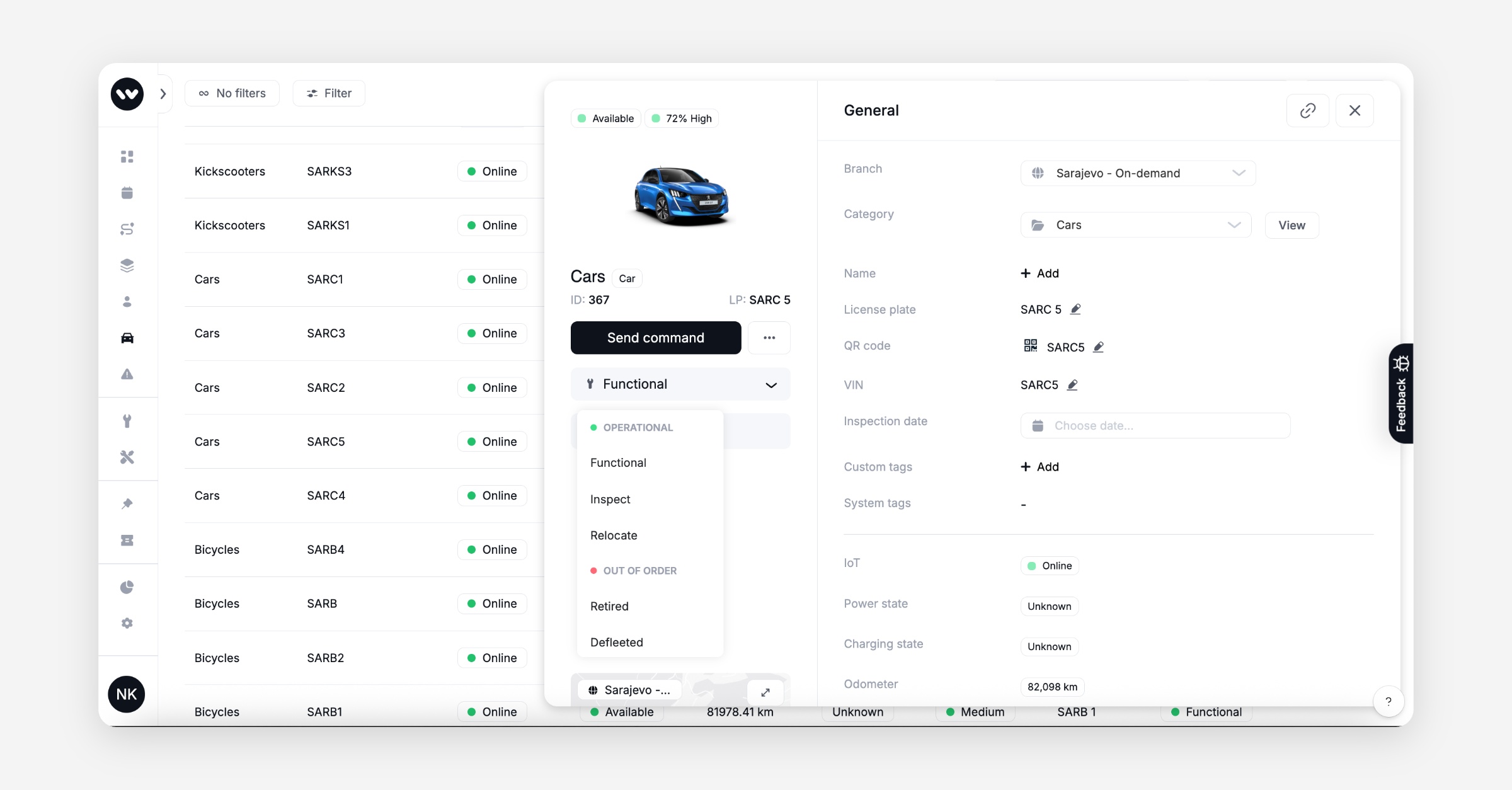 The vehicle-state dropdown now previews whether a change will make a vehicle available or unavailable, preventing mistakes during assignment. (MOB-389)