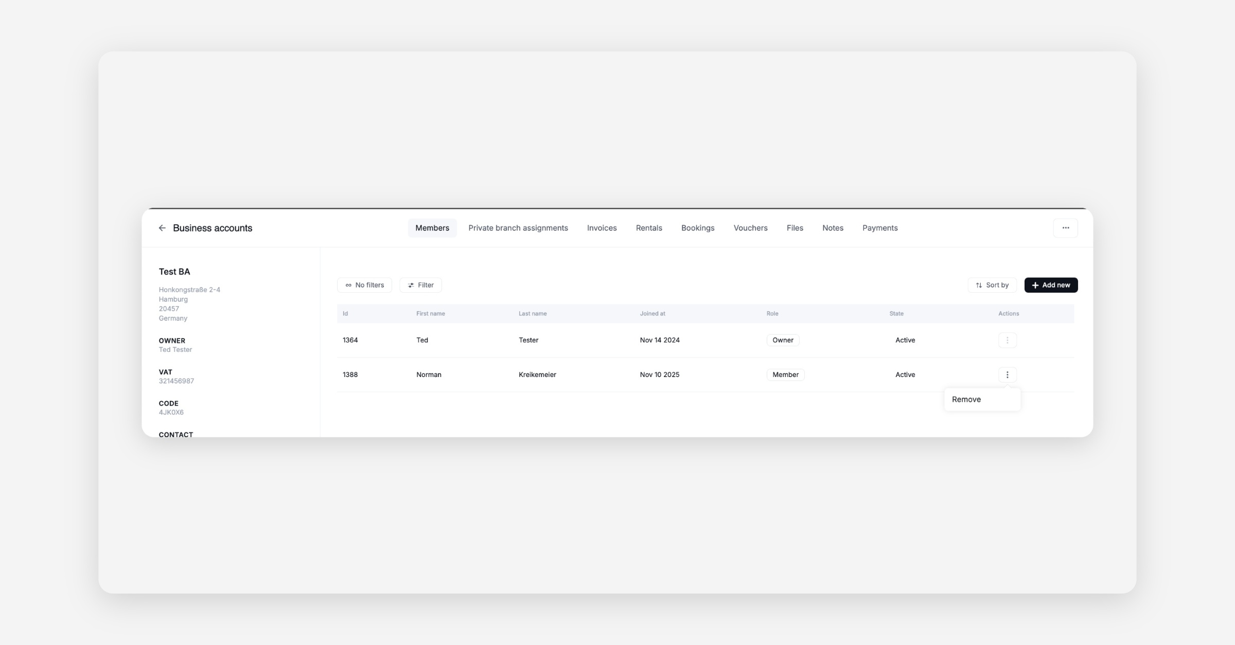 Remove members from Business Accounts. Operators can inactivate members directly in Business Accounts → Members to keep rosters current and control billing/report access. This avoids backend requests and reduces access drift.