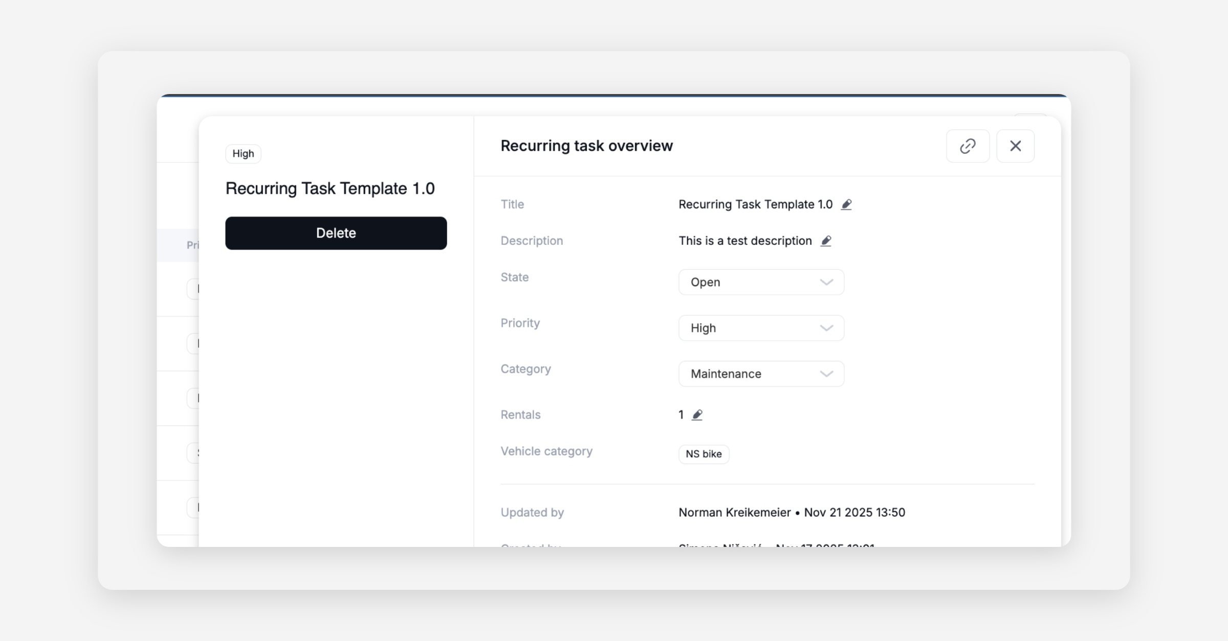 Recurring Tasks — Category & Priority/Severity. The recurring‑task setup now supports Category and Priority/Severity, and the values flow into generated tasks. This improves routing, filtering and SLA focus without changing existing workflows.