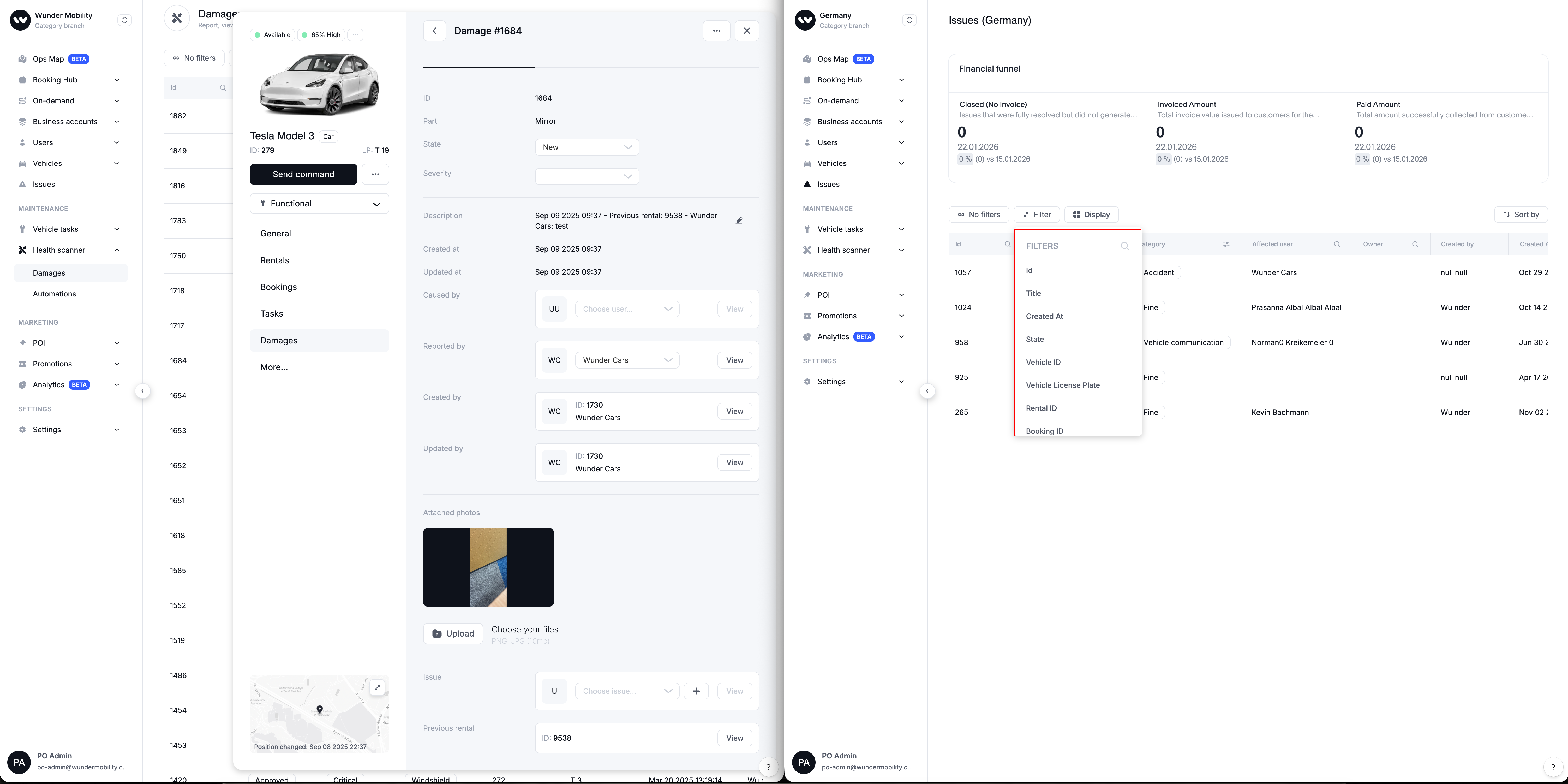 Create Issue from Damage: Added a "Create Issue" action directly within the Damage details panel. This streamlines the workflow for operators processing new vehicle damages, and gives Issue Owners a complete overview of what needs to be billed.