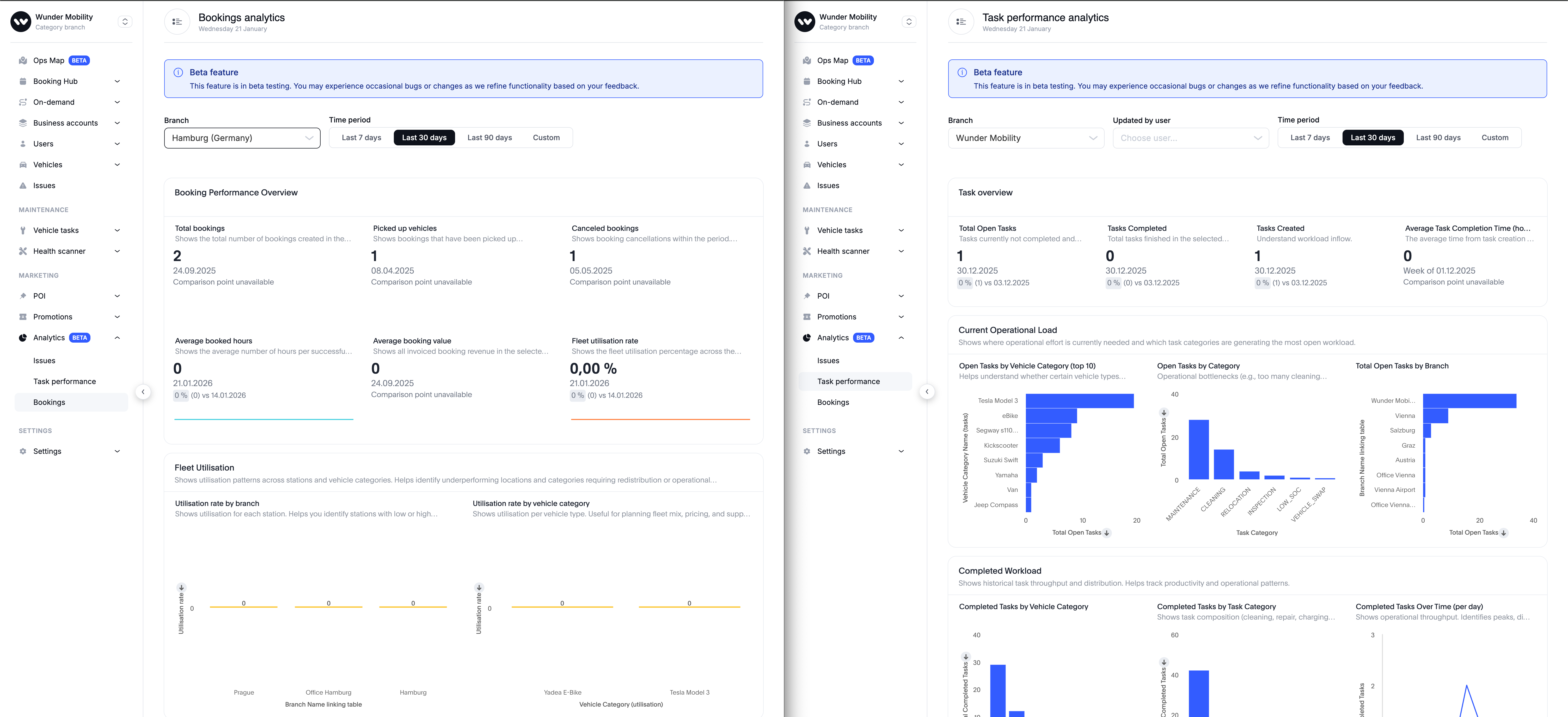 Tasks & Bookings Analytics: We introduced two new pages under the Analytics section: Tasks and Bookings.